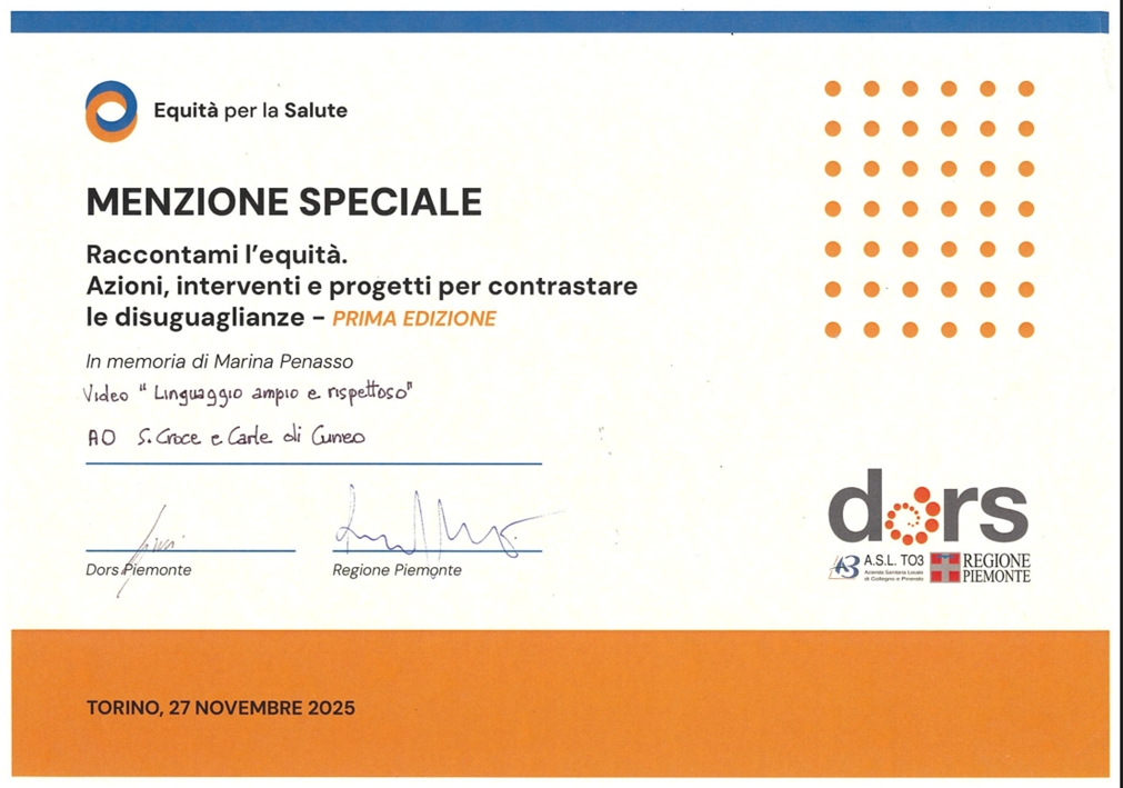 Presentato al Contest "Raccontami l’equità" promosso da Dors, Centro regionale di documentazione per la promozione della salute, il progetto della AO…