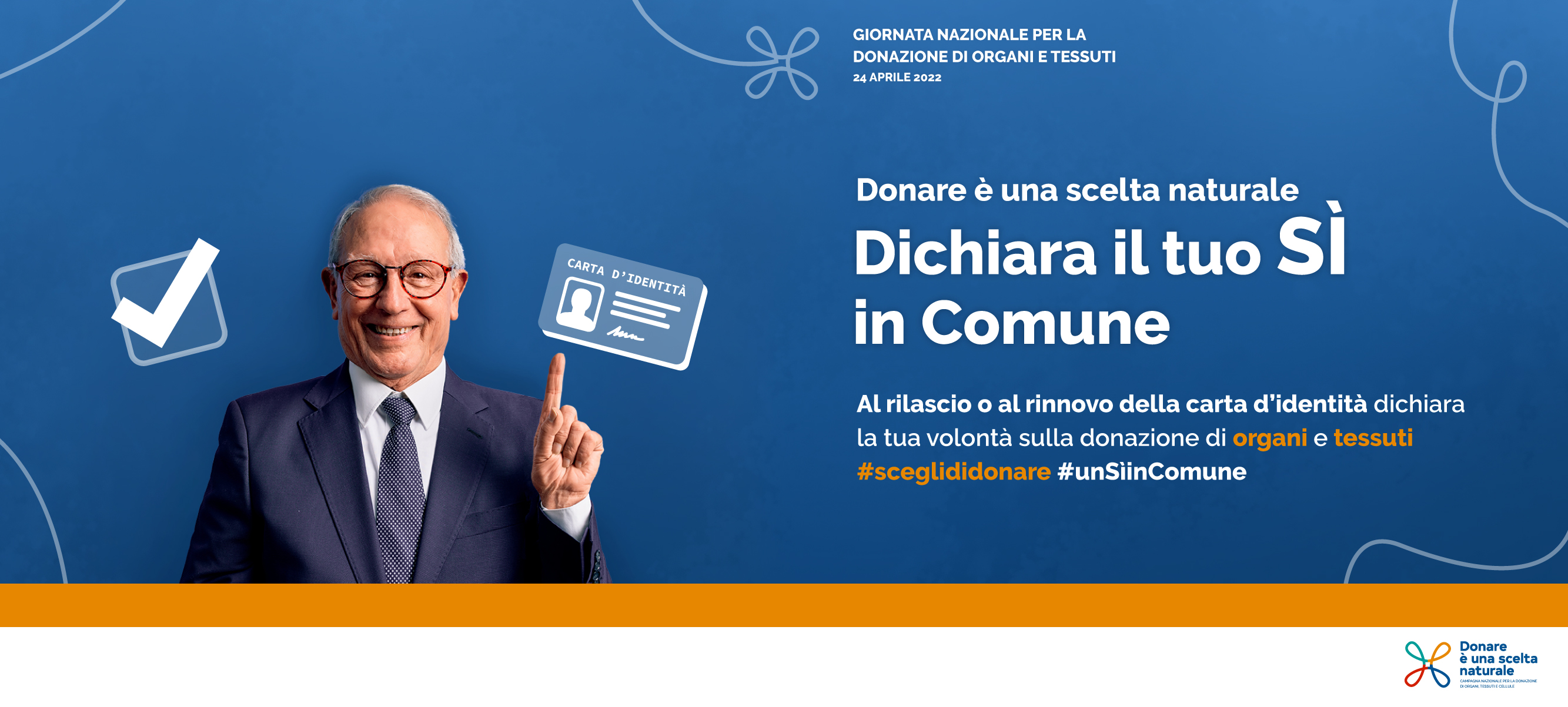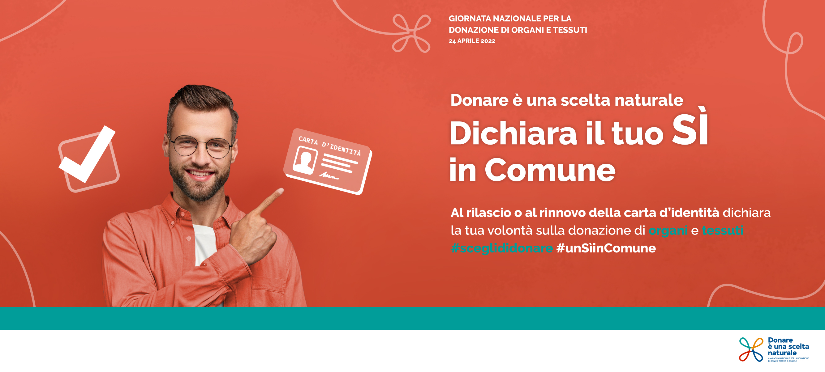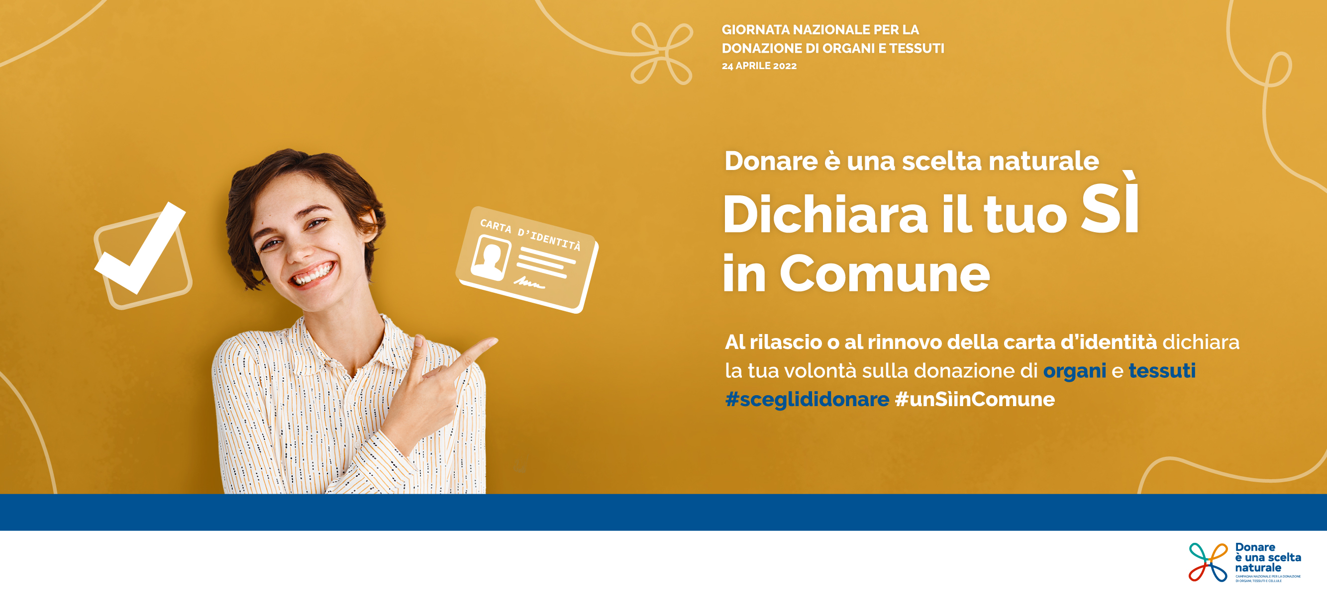 La campagna “Donare è una scelta naturale”, accompagnata dal pay-off “Dichiara il tuo Sì in Comune”, è al centro delle comunicazioni connesse alla XXV Giornata nazionale per la donazione e il trapianto di organi e tessuti in programma per il 24 aprile 2022.
