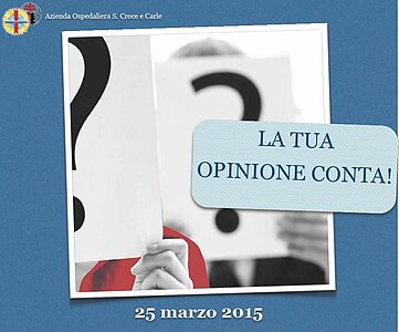 Mercoledì 25 marzo 2015 dalle ore 12,00 alle ore 13,30, presso il Salone di Rappresentanza dell'Ospedale S.Croce ( 1° piano - Blocco A) si terrà l'incontro dal titolo “La tua opinione conta!”.