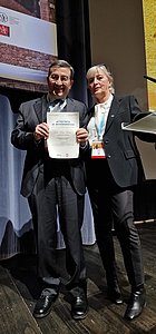 (Nella foto allegata: Elvio Russi con Cinzia Iotti, presidente italiana dell'associazione di Radioterapia Oncologica)