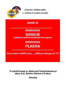Il Servizio Trasfusionale lancia l'applello per carenza di sangue del gruppo 0 rh negativo e plasma.