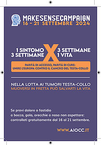 La struttura complessa di Otorinolaringoiatria e Chirurgia Cervico-Facciale dell’Azienda Ospedaliera S. Croce e Carle di Cuneo aderisce, anche nel 2024, alla campagna MAKE SENSE, iniziativa promossa dalla Società Europea dei Tumori Testa Collo, di cui in Italia è promotore l'AIOCC (Associazione Italiana di Oncologia Cervico-Cefalica). 1 sintomo per 3 settimane, 3 settimane per 1 vita è il motto dell’edizione italiana di quest’anno.