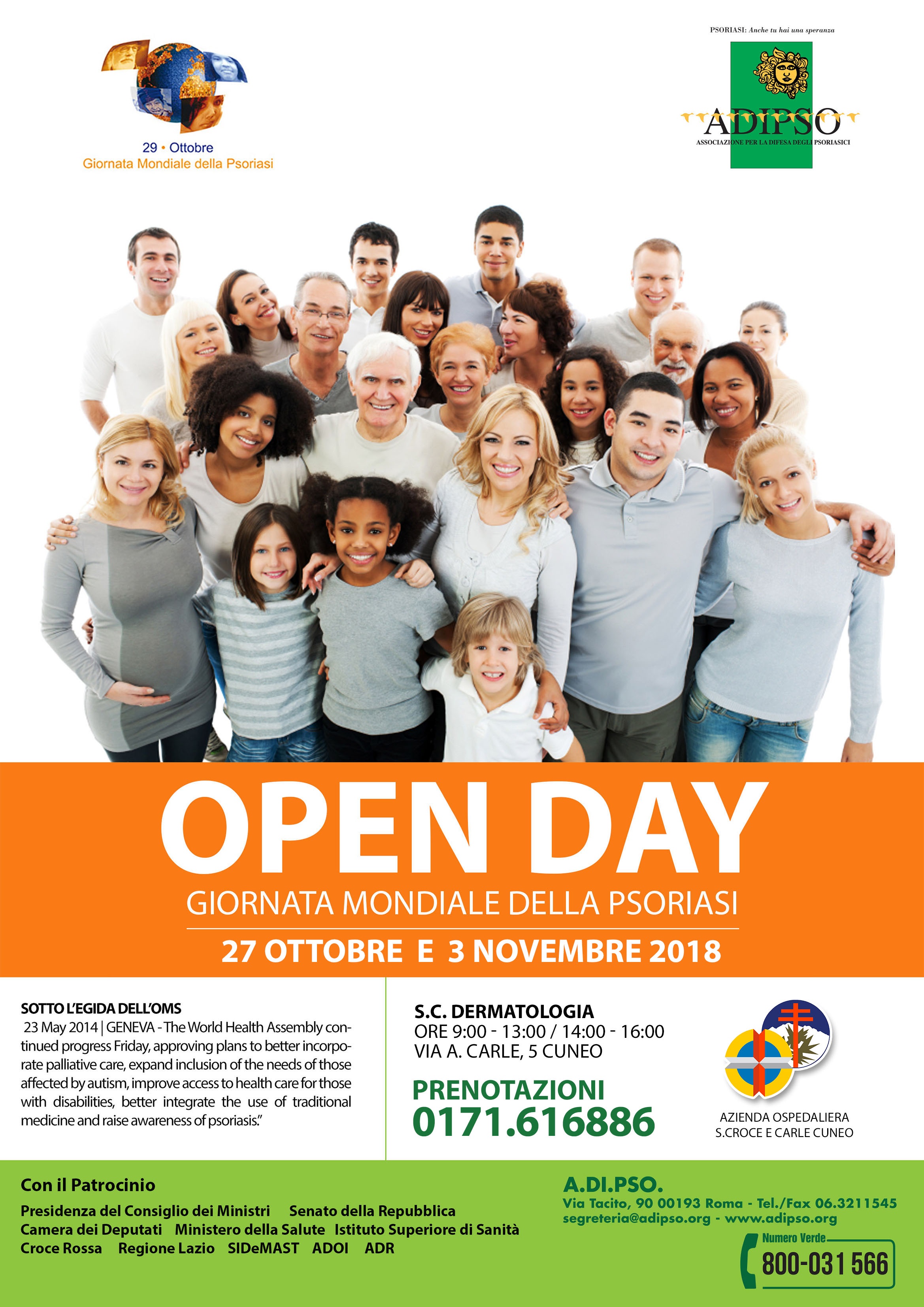 Nell'occasione della Giornata Mondiale della Psoriasi, la struttura di dermatologia dell'azienda ospedaliera Santa Croce e Carle di Cuneo metterà a disposizione i propri ambulatori presso il Presidio Carle (via A. Carle n. 5) per visite dermatologiche gratuite che saranno effettuate il 27 ottobre e il 3 novembre con valutazione dello specialista.