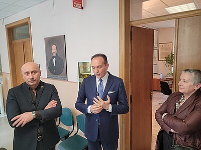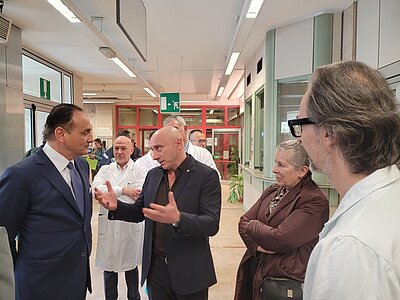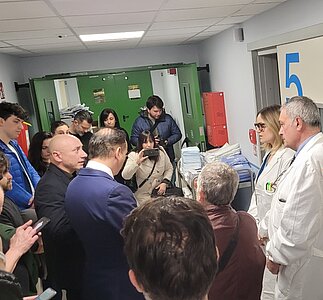 Visita del Presidente della Regione Alberto Cirio, questa mattina, presso l’ospedale S. Croce di Cuneo. Il presidente, accolto dal direttore generale Livio Tranchida e dai suoi collaboratori, ha incontrato i professionisti che operano in alcuni punti nodali del percorso relativo al recupero dei tempi di attesa: area ambulatoriale, Pet, piastra endoscopica e Medicina Interna. Inoltre ha constatato il puntuale utilizzo dei fondi del PNRR.