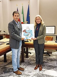 Nel corso del Consiglio Comunale di Boves del 18 ottobre, la Scuola Edile, attraverso la direttrice Laura Blua, ha consegnato a Giannluca Cavallo, operatore sanitario del S. Croce, un quadro a mosaico realizzato dai carcerati della casa Circondariale Cerialdo, frutto di uno dei tanti progetti che si realizzano all'interno del carcere.