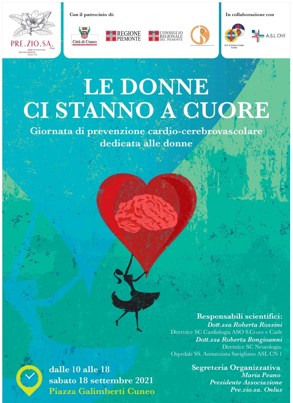 Si intitola “Le donne ci stanno a cuore” l’evento sul rischio cardio-cerebrovascolare e di prevenzione nelle donne, in programma a Cuneo sabato 18 settembre, promosso dall’Associazione Pre.zio.sa. Prevenzione Promozione Salute Onlus, presieduta da Maria Peano.