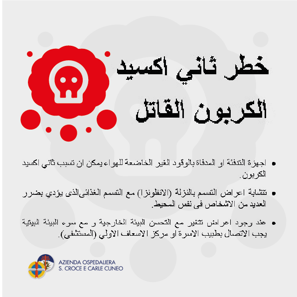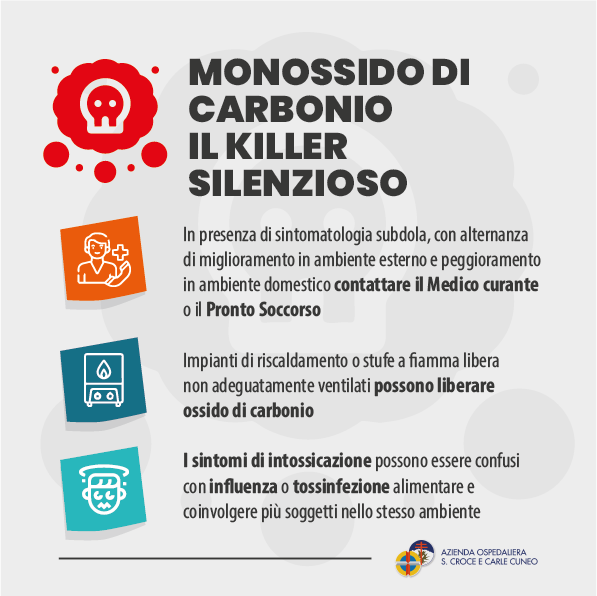 Dall’Azienda Ospedaliera S. Croce forniscono alcune raccomandazioni. La presenza di stufe, caminetti o altre fiamme libere in locali non adeguatamente ventilati possono causare accumulo di monossido di carbonio, un gas inodore e incolore, che causa un'intossicazione che può essere mortale. Occorre sempre rispettare le indicazioni d’uso riportate sulle istruzioni dell’apparecchio e ventilare gli ambienti nei quali è in opera un sistema di riscaldamento. Sull’opuscolo pubblicato sul Portale dell'Azienda seguono alcune informazioni, scritte anche in 4 lingue straniere (francese, inglese, albanese e arabo): impianti di riscaldamento o stufe a fiamma libera non adeguatamente ventilati possono liberare ossido di carbonio; sintomi di intossicazione possono essere confusi con influenza o tossinfezione alimentare e coinvolgere più soggetti nello stesso ambiente; in presenza di sintomatologia subdola, con alternanza di miglioramento in ambiente esterno e peggioramento in ambiente domestico, occorre contattare il medico curante o il Pronto Soccorso.