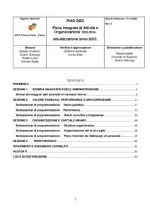 In modo particolare contiene gli elementi riferiti alla performance, al sistema di gestione del rischio corruttivo ed alla trasparenza, alla gestione delle risorse umane.