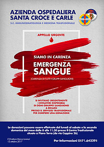 Il Centro Trasfusionale dell'ospedale Santa Croce di Cuneo lancia l'appello di ricerca di sangue invitando i donatori di ogni gruppo sanguigno a voler recarsi presso il loro centro per compiere la donazione.