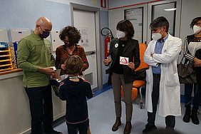 In occasione della Giornata della Prematurità, che si celebra il 17 novembre in tutto il mondo, Diego Colombari, campione di handbike e medaglia d’oro alle Paralimpiadi di Tokyo 2020, ha premiato i “piccoli guerrieri” che stanno combattendo la loro battaglia nella TIN, Terapia Intensiva Neonatale, dell’Azienda Ospedaliera S. Croce e Carle. Insieme al figlio ha donato, ai piccoli ricoverati, delle medagliette autografate raffiguranti due piedini viola (colore simbolo dell’iniziativa) e un adesivo per auto con la scritta “Prematuro a bordo”. “Una Giornata che è particolarmente sentita in famiglia perché nostro figlio è nato prematuro ed è stato affidato alle cure della Terapia Intensiva Neonatale di Cuneo – racconta Diego Colombari –. Da genitori, quando ci hanno detto che doveva nascere in anticipo, non sapevamo che tipo di percorso avremmo dovuto affrontare e quanto sarebbe durato. Oggi essere in ospedale a Cuneo vuol dire portare un messaggio di speranza ad altre famiglie. Abbiamo voluto che fosse nostro figlio a consegnare piccoli doni ai genitori dei bimbi della TIN per dimostrare loro che bisogna vivere questo momento con fiducia e forza perché la vita, in questo caso grazie all’aiuto dei professionisti dell’Azienda Ospedaliera S. Croce e Carle, spesso sorprende. Noi ne siamo la dimostrazione.”